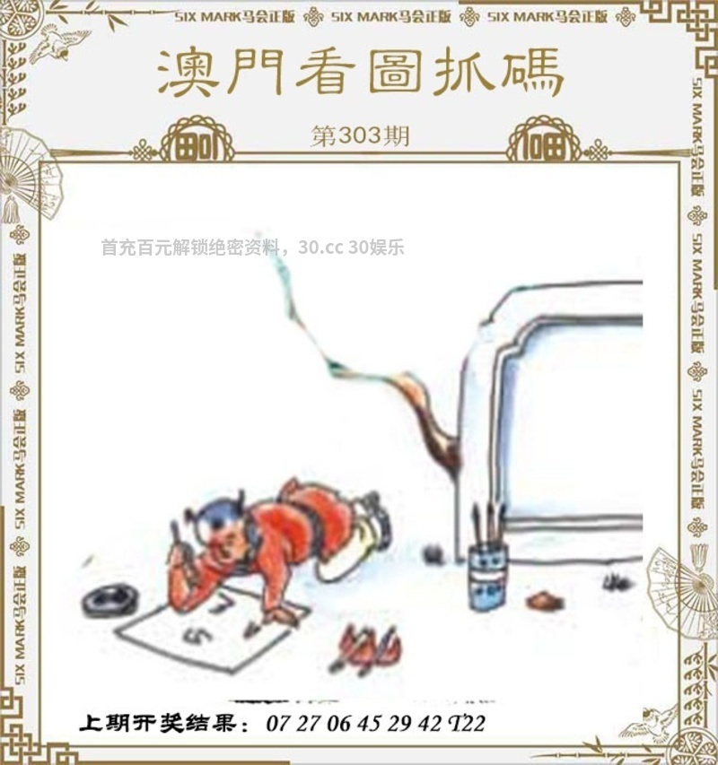 【妙解看图抓码】303期:图中有一个孩子正在地上用毛笔练习写字,他正在写数字5和7,他身旁有一个装有毛笔的笔筒和一个砚台。 【看图抓码主看】:猪牛鸡虎兔羊  |